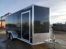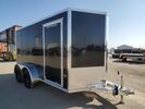 NEW STEALTH 7x12ft Enclosed Cargo Trailer from Alcom - Rear Barn Doors - Upgraded Black Aluminum Rims - All Aluminum Construction - 24in Sloped V-Nose Front - 2in x 4in Integrated frame - 24in o/C Floor and Roof Studs - 16in O/C Wall Studs - Screwless .030 Bonded Sides - On...