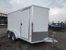NEW Stealth 7x14ft Aluminum Enclosed Cargo by Alcom - Rear Ramp Door w/ Spring Assist - All Aluminum Construction - 24in V-Nose Front - 2in x 4in Integrated frame - 24in o/C Floor and Roof Studs - 16in O/C Wall Studs - Screwless .030 Bonded Sides - One Piece Aluminum Roof - ...